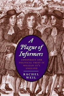 A Plague of Informers is a set of linked stories rather than a grand narrative, and like many Altman films it could have a cast of hundreds. The episode I'll cast here concerns Matthew Smith, who joined a Jacobite conspiracy in 1696 to overthrow the English government (Jacobites were rebels who wanted to put King James II, who had been deposed in 1688, back on the throne of England). Then Smith changed sides and tried to reveal the conspiracy to the Duke of Shrewsbury, the "secretary of state" responsible for national security. Of course Smith asked Shrewsbury for money so that he could keep pretending to be a conspirator -- he needed to buy a horse, armor, and drinks for his Jacobite companions, he said, so that the conspirators would trust him and spill their secrets. Shrewsbury, deciding that Smith was a fraud, refused to pay him. Unfortunately for Shrewsbury, it turned out that there really was a plot against the government. Now Smith could accuse Shrewsbury of willfully ignoring him to cover up the plot and indeed of being a Jacobite plotter himself. The job of defending Shrewsbury fell to James Vernon, Shrewsbury's immediate subordinate. Deploying bribery, subterfuge, and the services of the unsavory spy and propaganda-writer named Richard Kingston, Vernon struggled valiantly to discredit and silence Matthew Smith. To know if he succeeded you will have to see the movie (or read my book!).